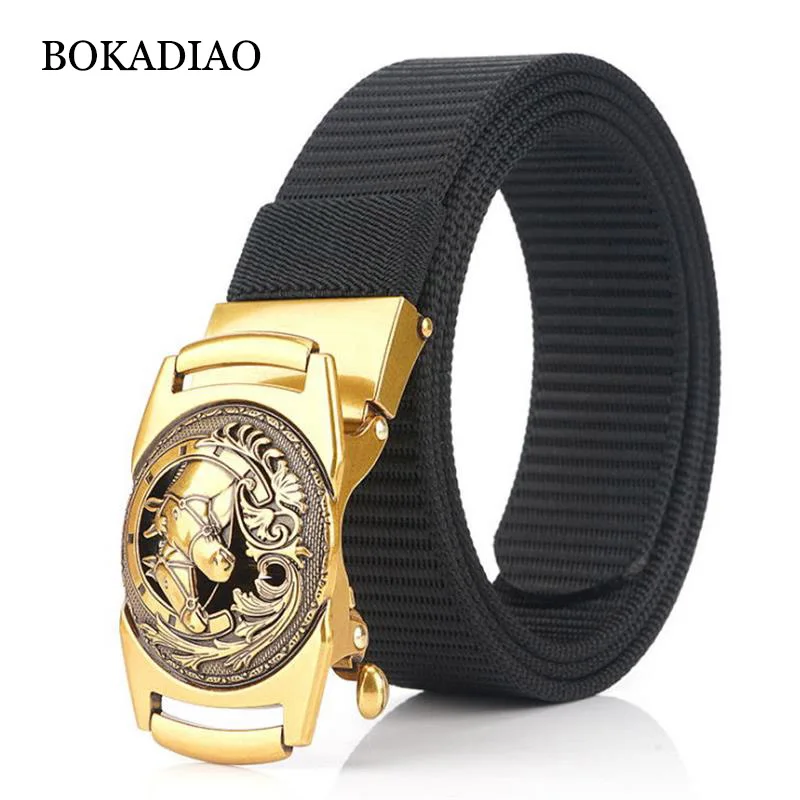 Нейлоновый ремень BOKADIAO, роскошные металлические ремни с автоматической пряжкой для мужчин, модный ремень для джинсов, уличный Повседневный холщовый мужской ремень, высокое качество