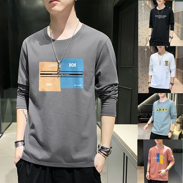 новый корейский мужская с длинным рукавом top sweatert футболку sweatert футболку свободный случайный хлопок свитер вокруг шеи мужчины дна в, Black