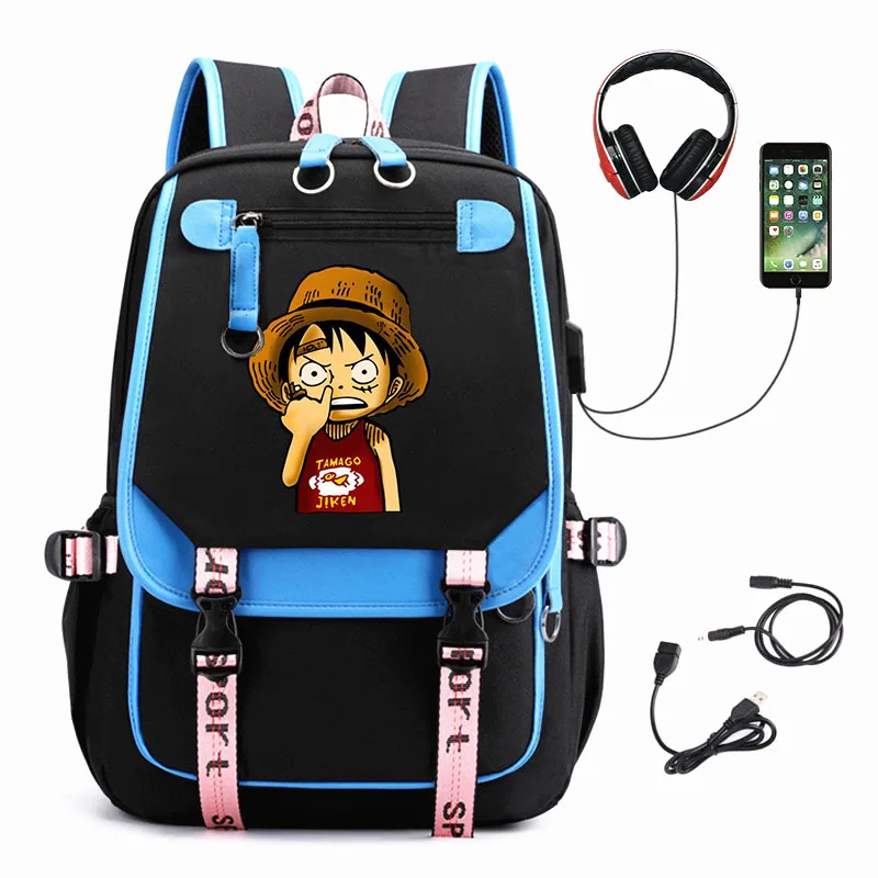 Нейлоновый рюкзак с принтом аниме Luffy Law, школьный ранец унисекс с USB-разъемом для подростков, дорожная сумка на молнии для студентов, Повседн...