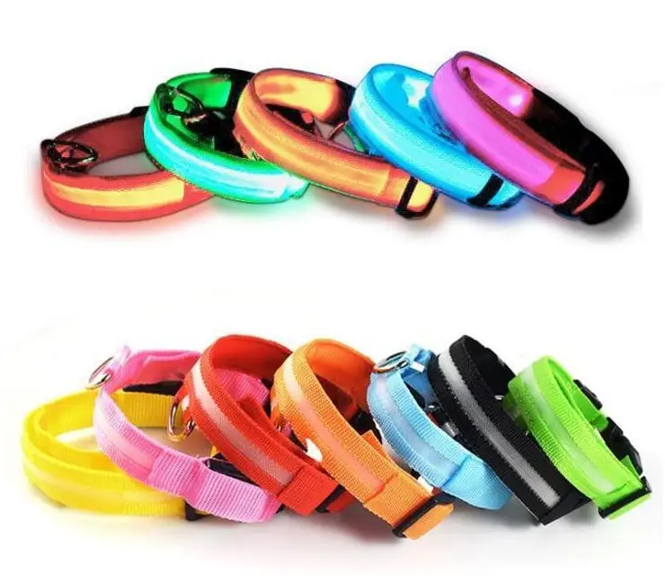 Нейлоновый светодиодный ошейник для собак, ночной мигающий поводок светится в темноте, светящийся флуоресцентный ошейник для собак, товары для домашних животных SN777