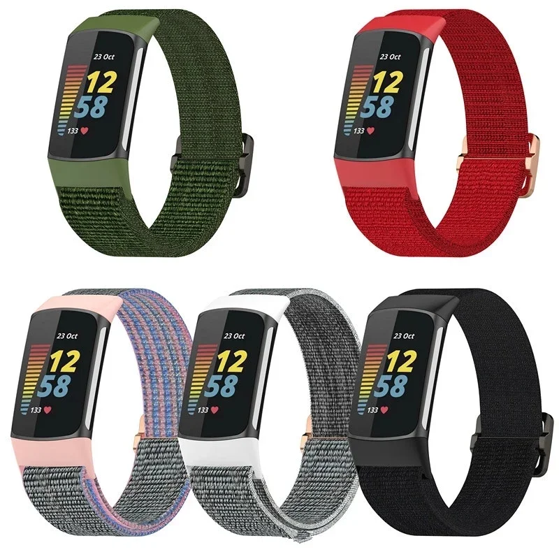 Нейлоновый эластичный ремешок для смарт-часов Fitbit Charge 5 с регулируемой металлической пряжкой
