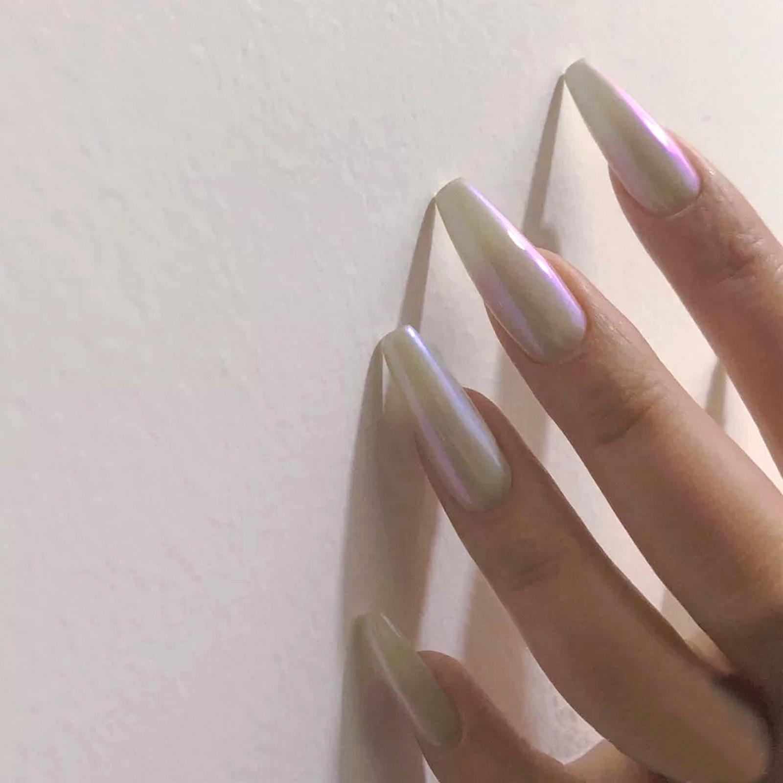 Нейл-арт Длинные балетные ногти, гвозди Coffin, пудровый нейл-арт Aurora, готовые ногти, накладные ногти