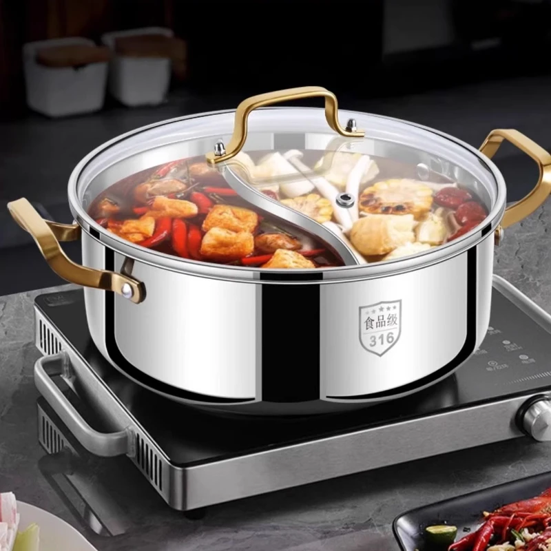 Немецкая суповая кастрюля из нержавеющей стали 316, с двумя ручками, большая емкость, утолщенная индукционная безопасная многослойная композитная основа