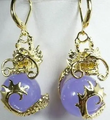 Необычные серьги 12 мм с аметистом драконом 18KGP