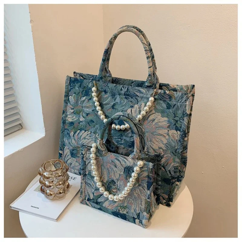 Необычный дизайн, джинсовые сумки для женщин, новинка 2021, осенняя роскошная женская Холщовая Сумка-тоут, украшенная жемчужинами, диагональная женская сумка-Кроссбоди
