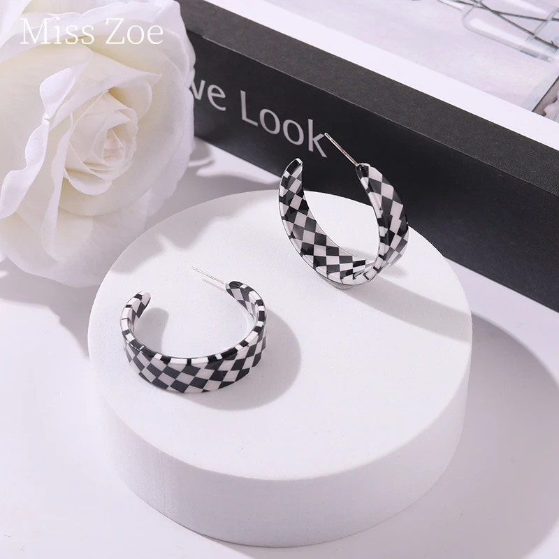 Y2K Korean Ins Fresh Wind Checkerboard Drop Earrings Sweet Romantic Candy Colors Shape Acrylic Earrings For Women Friend Jewelry