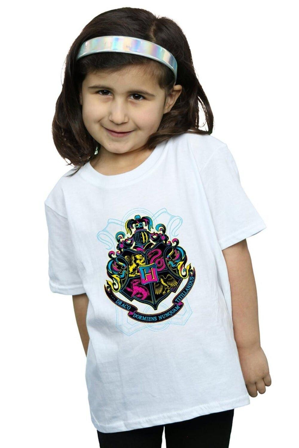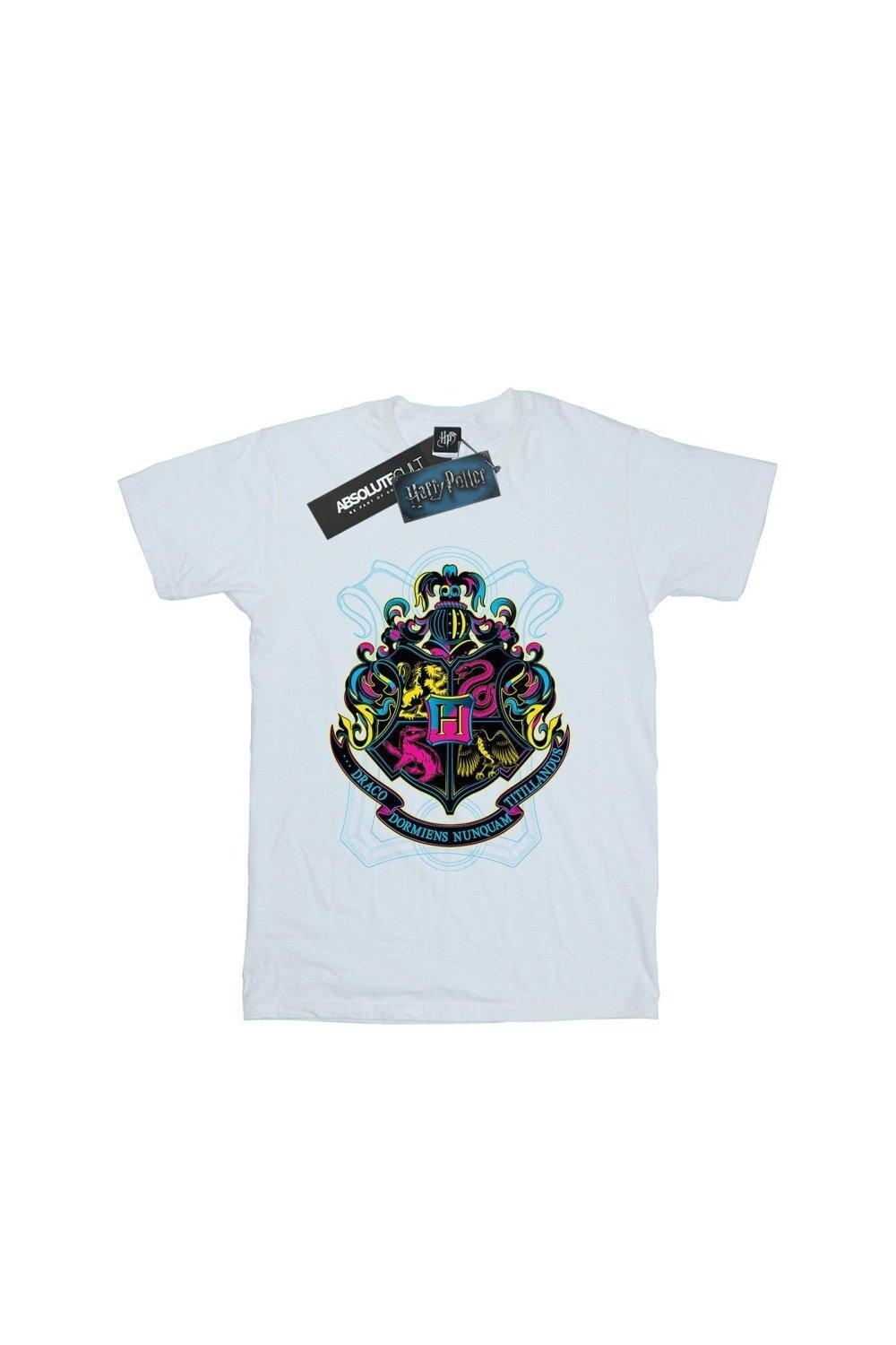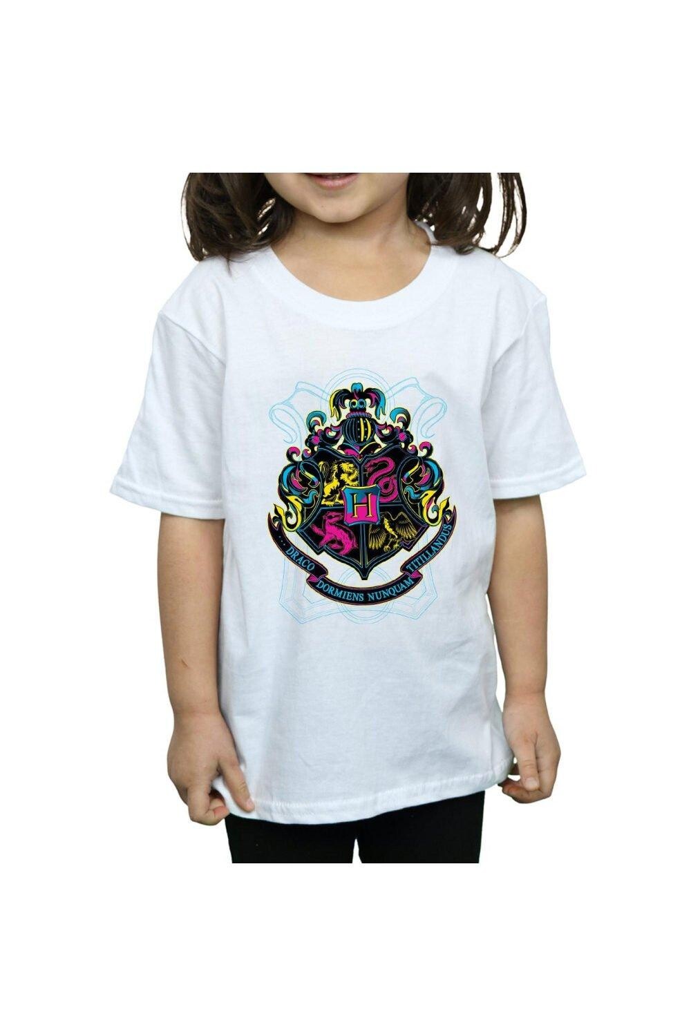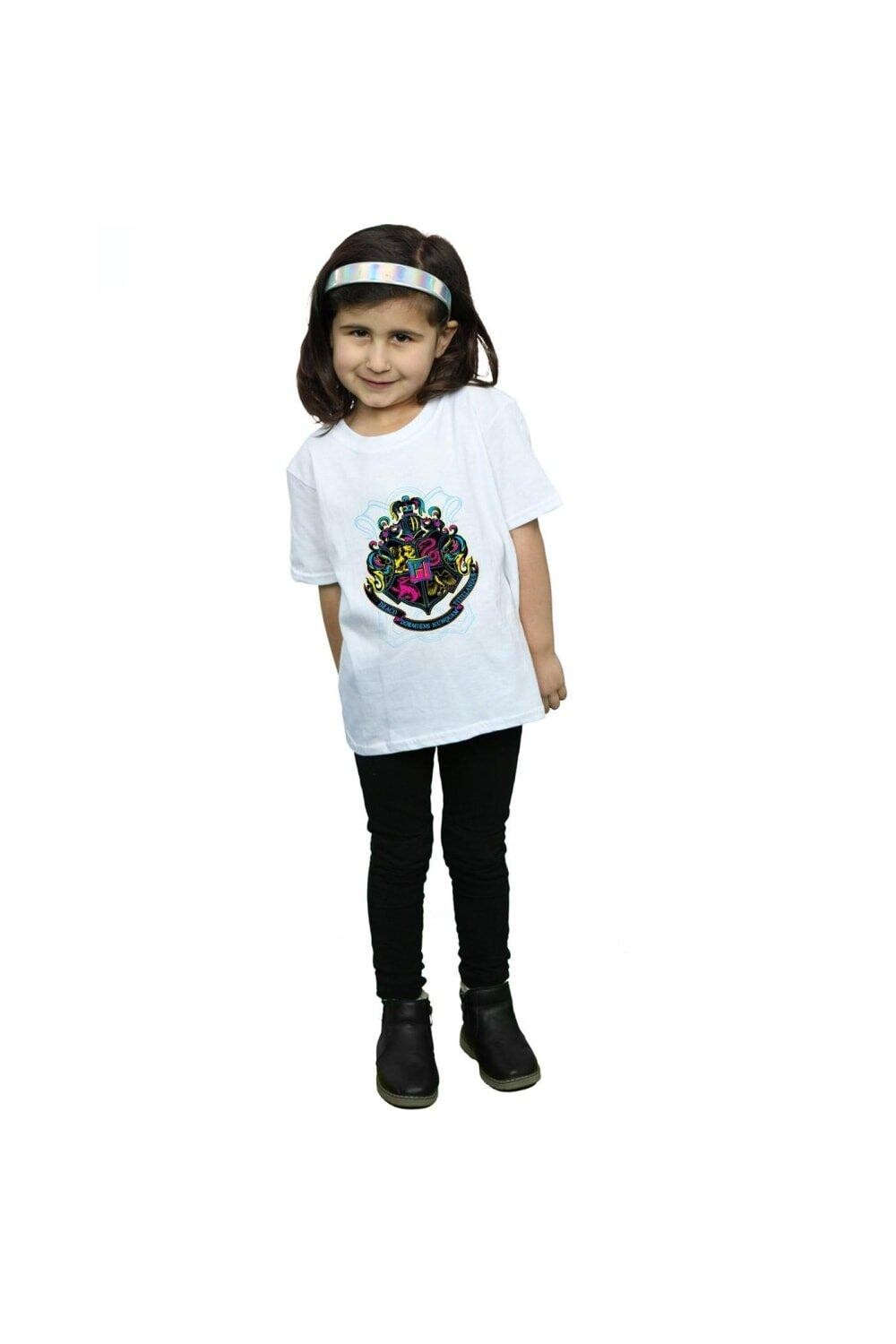 Неоновая хлопковая футболка с гербом Хогвартса Harry Potter, белый