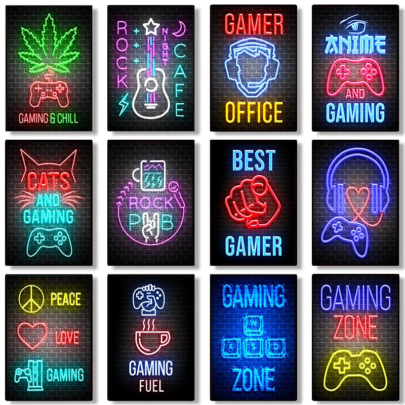 Неоновый дизайн, постеры для игр, Картина на холсте, искусство для игр, настенное искусство для игровой комнаты, Декор для дома, бара, настенное украшение