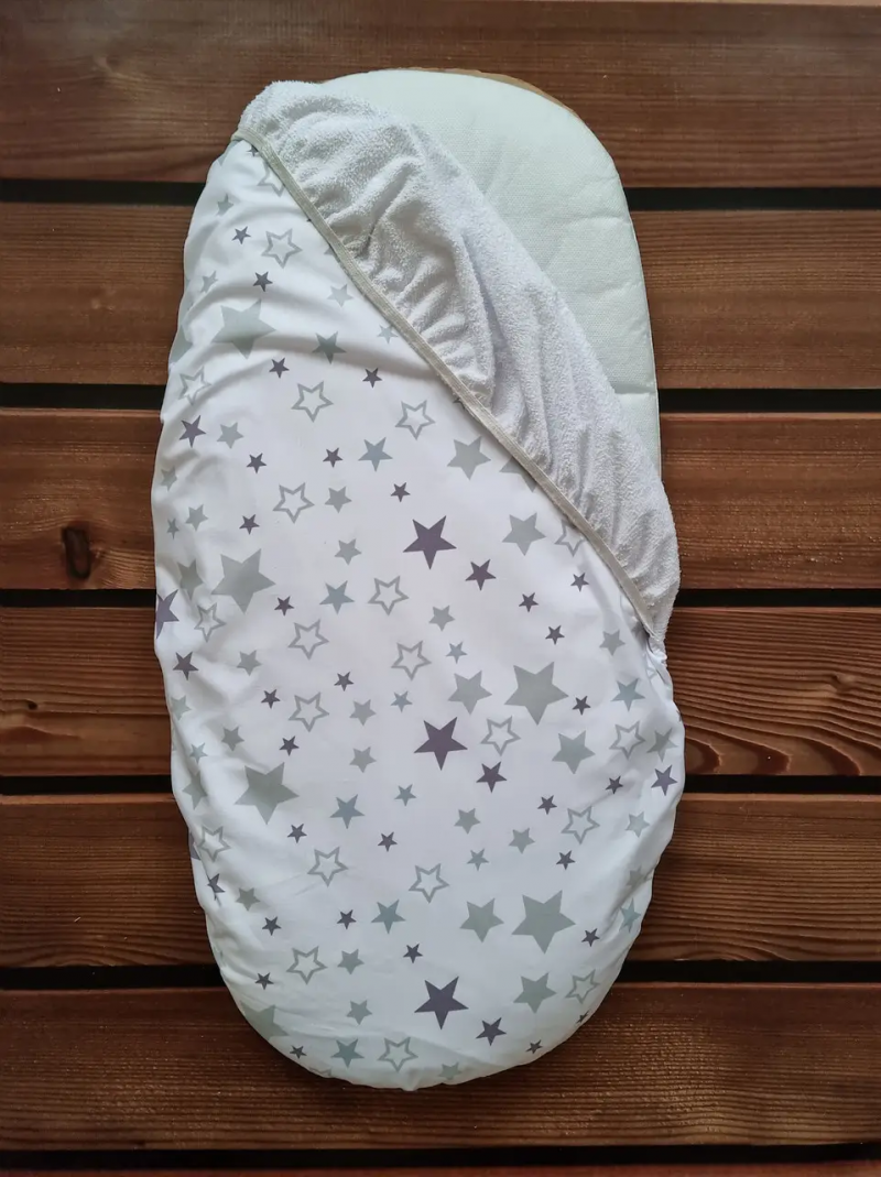 Непромокаемый наматрасник в коляску на резинке. Защитит матрасик в коляске от протеканий.