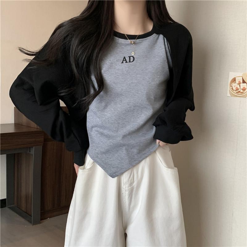Нерегулярные поддельные две короткие толстовки с длинными рукавами, тонкий женский топ 2XL чёрный