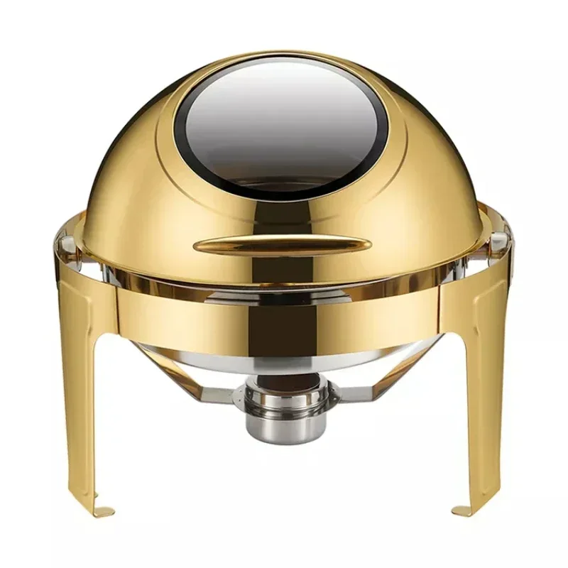 Нержавеющая сталь, золото, полная откидная крышка, круглый видимый обогреватель для шведского стола, изоляция для отеля, электрическое отопление
