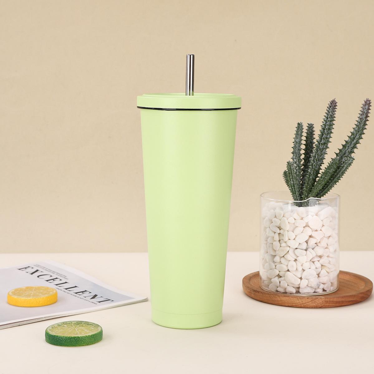 Нержавеющая сталь черный край соломенная чашка портативный автомобильный подарочный термос чашка большой емкости вакуумная кофейная чашка 750ML