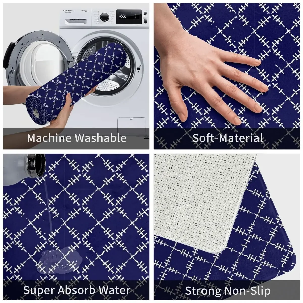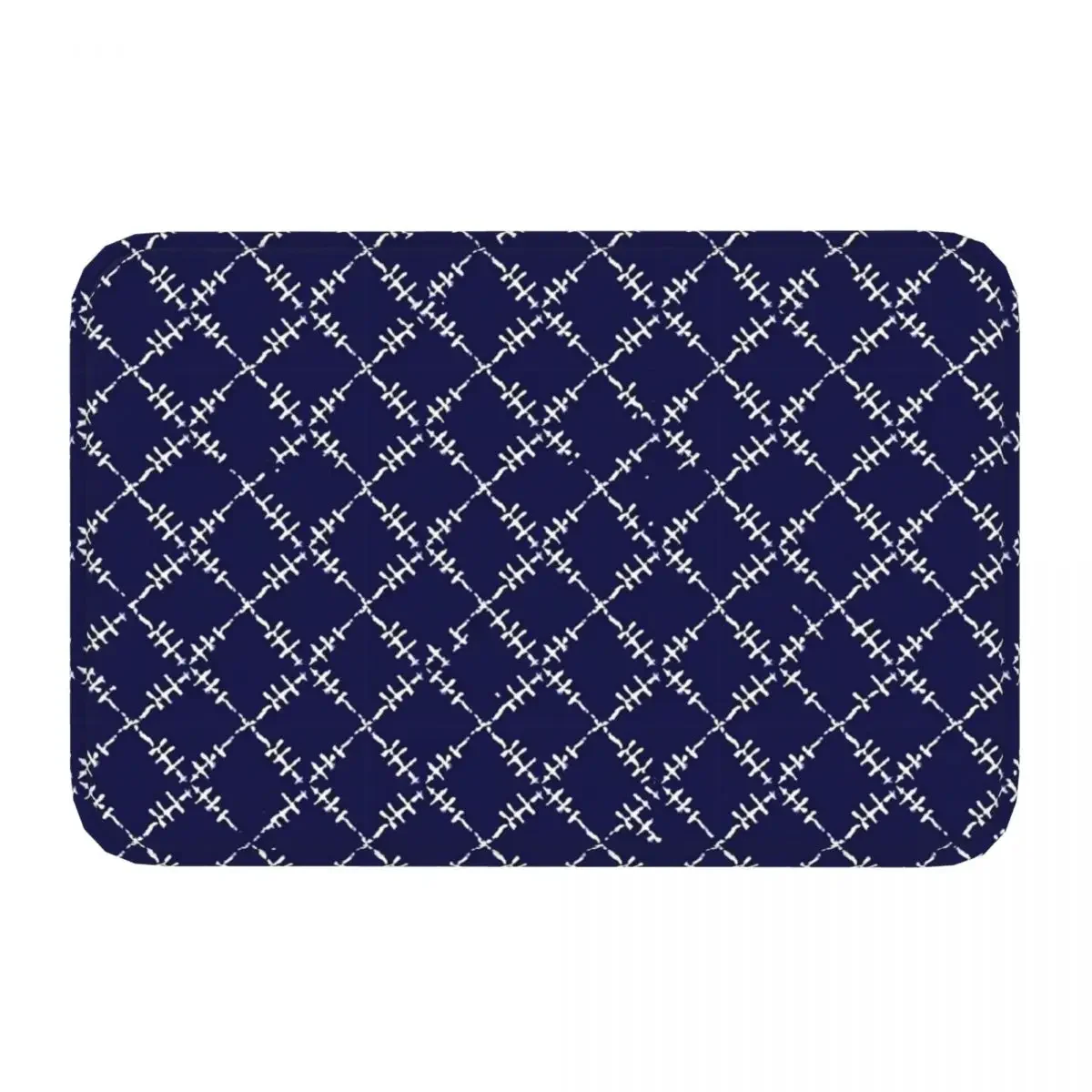 Нескользящий коврик для ванной с ромбами, синий напольный коврик, домашний декоративный коврик
