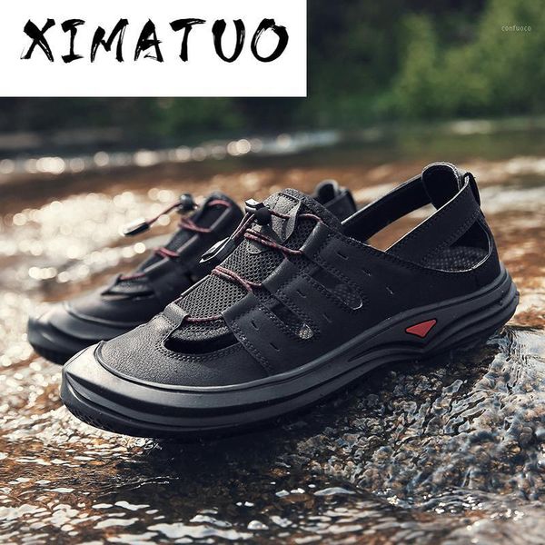 2020 new men sandals genuine leather summer quality beach slippers beach shoes water sandals waterproof men outdoor1, Black