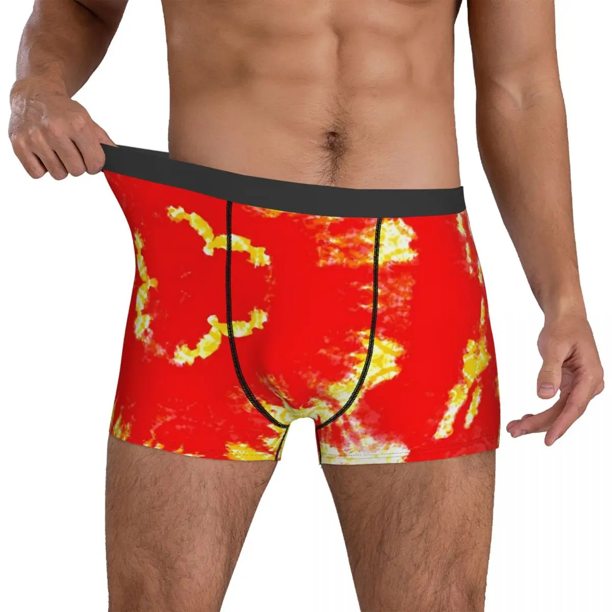 Нижнее белье Tie Dye Dreams, красные и желтые дышащие трусы-боксеры с рисунком, мужские шорты-боксеры