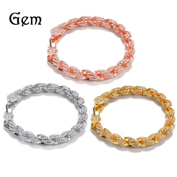 cuban link chains hip-hop diamond-studded alloy bracelet twist rope chain personalized accessories, Silver