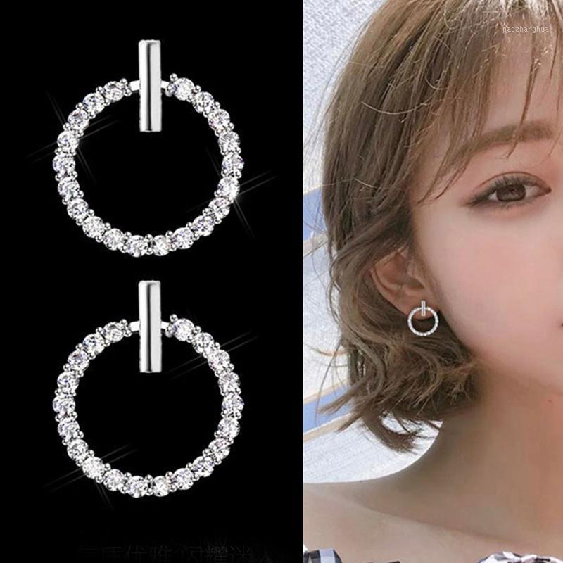 Stud Female Simple Cute Rhinestone Round Earring Fashion Crystal Geometric Earrings For Women Party Jewelry Gift, Golden;silver