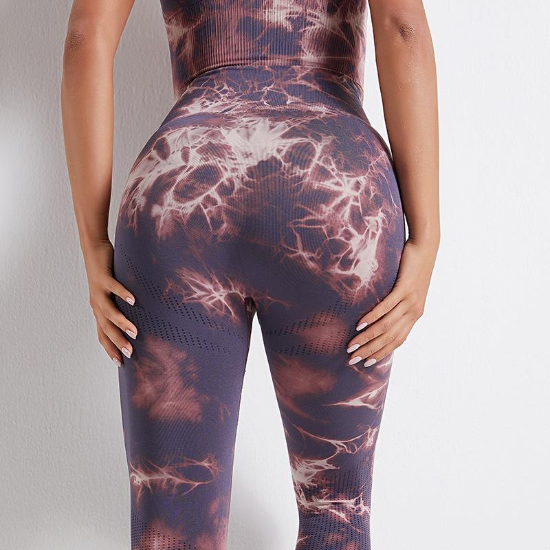 Dye Print Sexy Women Seamless Yoga Leggings Tights FItness Workout Sports Pants Elastic High Waist Booty Lift Women Leggings, Red