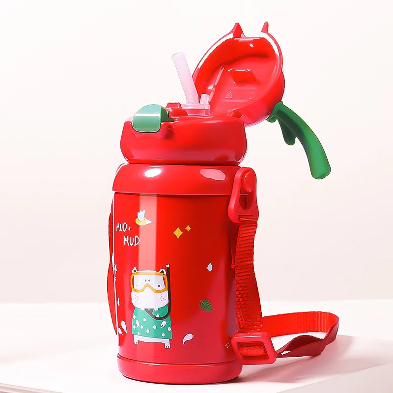 Face Antlers Children's Insulation Cup Kindergarten Cute Baby Carrying Straw Cup Student Portable Stainless Steel Kettle