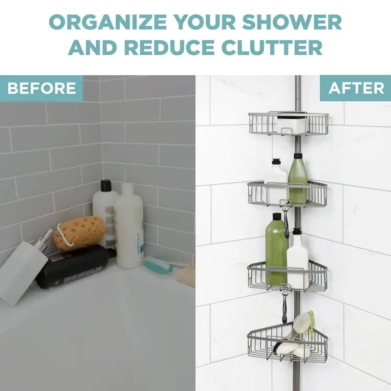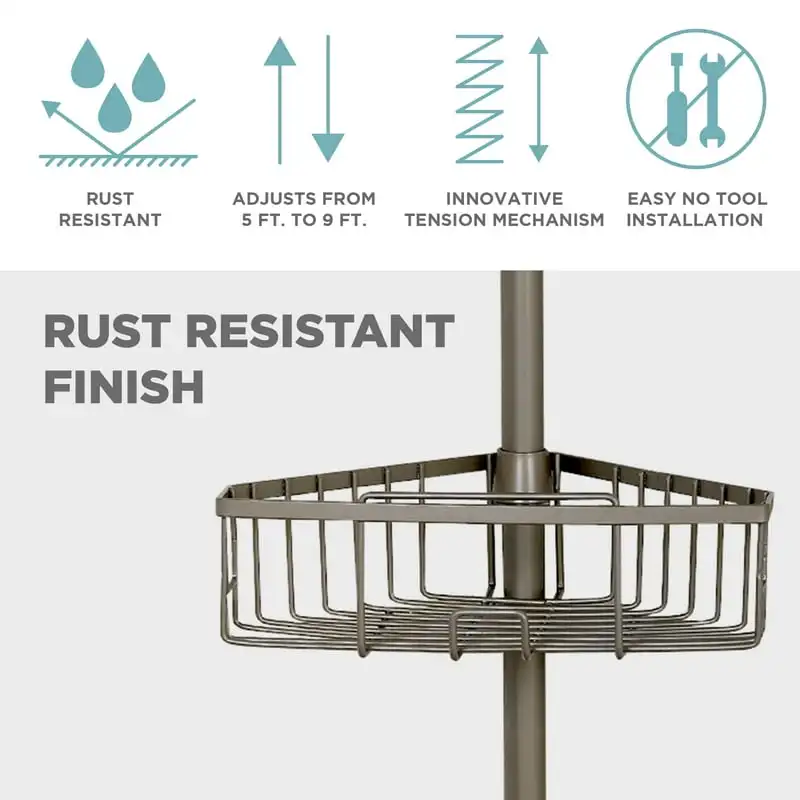 Никелевый держатель для душа с 4 полками для корзины, Натяжной держатель
