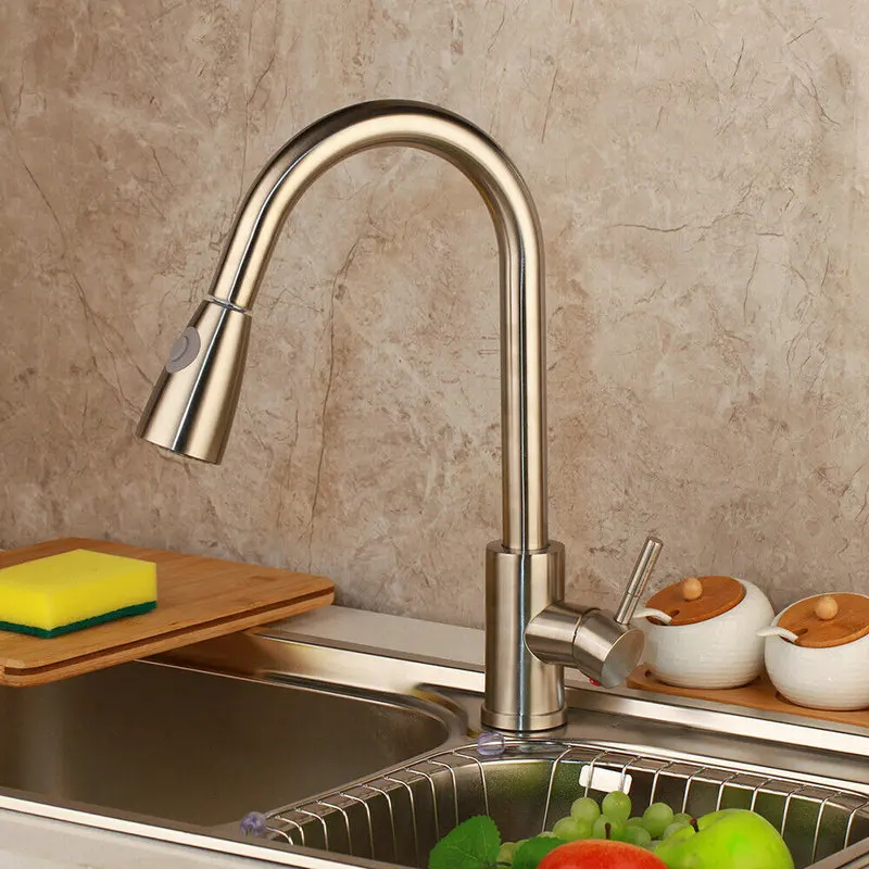 Никелевый матовый кухонный смеситель, выдвижной струйный смеситель из твердой латуни, 1 ручная раковина