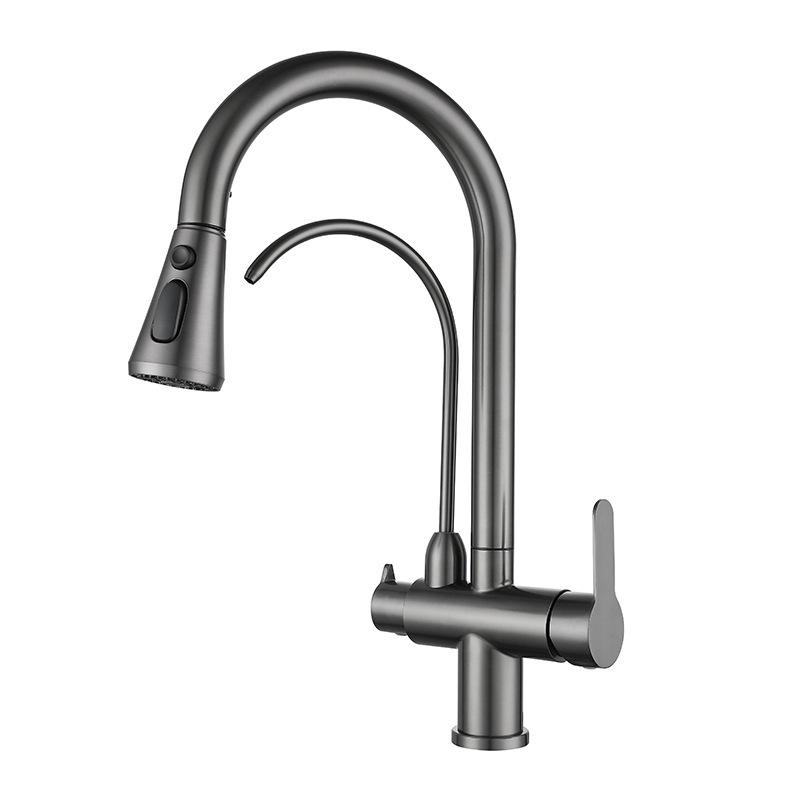 Никель/Черный 304 Нержавеющая Сталь Выдвижной Кухонный Смеситель Двойная Ручка Одно Отверстие Очиститель Воды Мытье Горячей и Холодной Воды Смеситель для Раковины серый