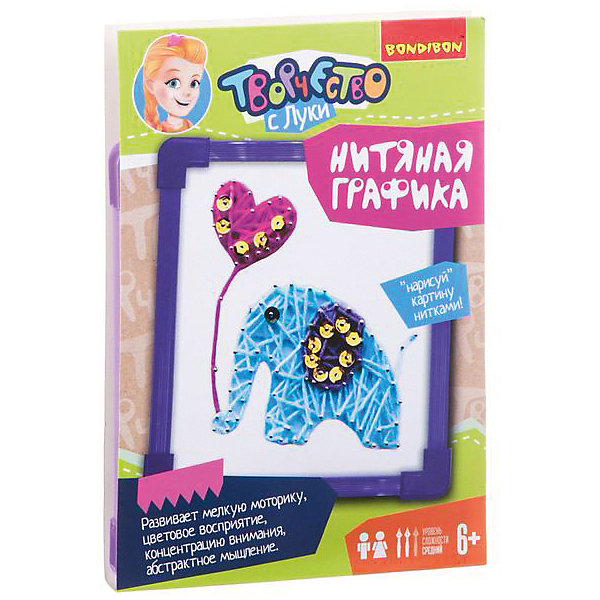 Нитяная графика Bondibon "Слоник, Нитяная графика Bondibon "Слоник"