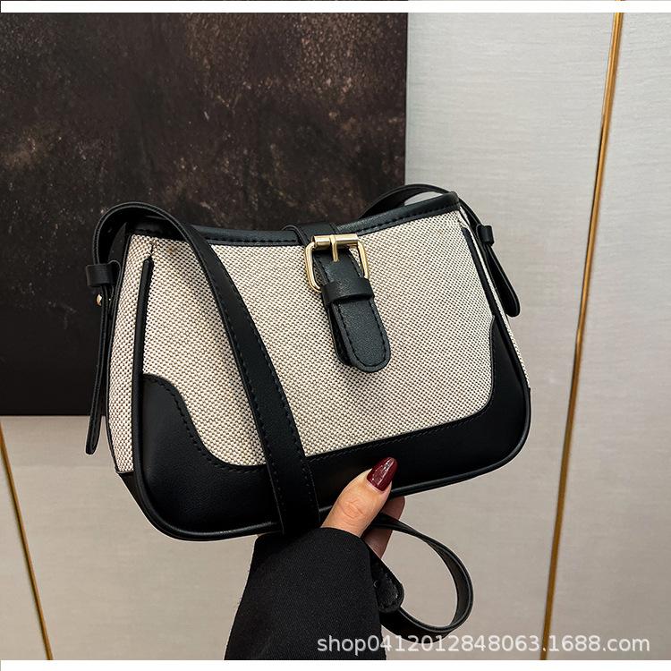 Нишевая дизайнерская сумка женская сумка 2025 новая повседневная осенне-зимняя женская модная холщовая сумка через плечо подмышку маленькая квадратная сумка чёрный