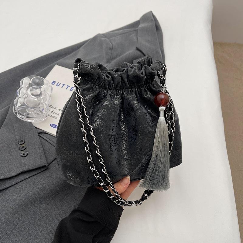 Нишевая дизайнерская сумка-плиссировка на весну и лето в стиле ретро, универсальная ручная сумка-ведро, универсальная модная сумка-мессенджер через плечо с цепочкой чёрный