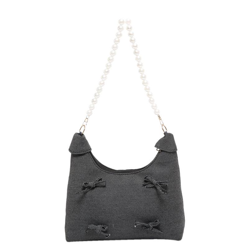 Нишевая нежная модная сумка через плечо с бантом и жемчугом 2024 года, летняя новая персонализированная сумка для поездок под мышкой для женщин чёрный