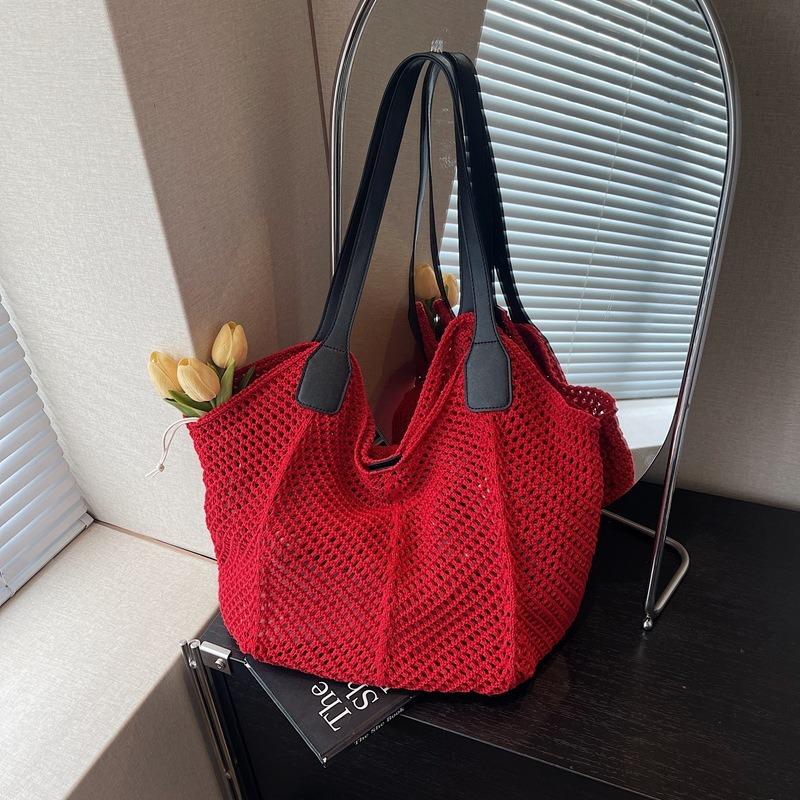 Нишевая пляжная сумка из плетеной сетки, женская новая сумка-тоут для通勤, большая вместимость, подмышечная сумка красный