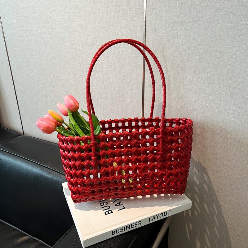 Нишевая полая плетеная сумка-корзина новая летняя пляжная сумка для отпуска повседневная универсальная на плечо подмышку красный