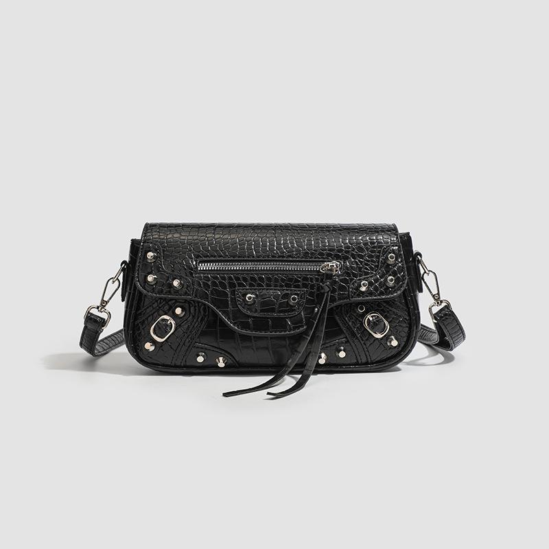 Нишевая сумка-локомотив с заклепками, новая европейская и американская модная индивидуальная сумка на плечо, подмышку, кроссбоди, маленькая сумка, женская сумка чёрный