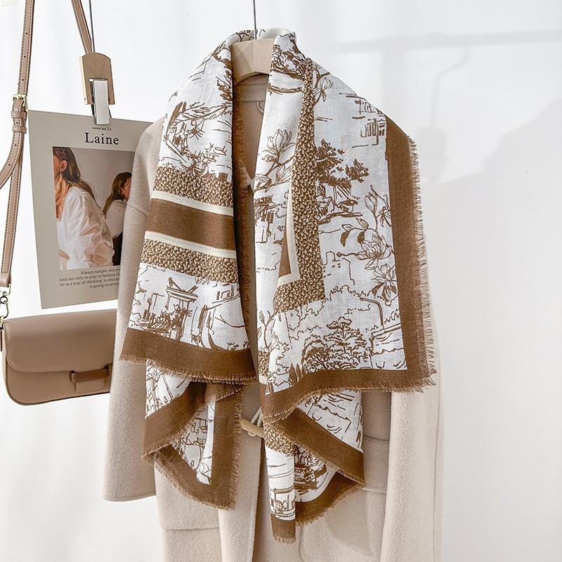 Нишевый ретро платок квадратный с принтом цветов и растений, высококлассный, с бахромой, большой квадратный платок, модный осенне-зимний, внешняя шаль 130*130