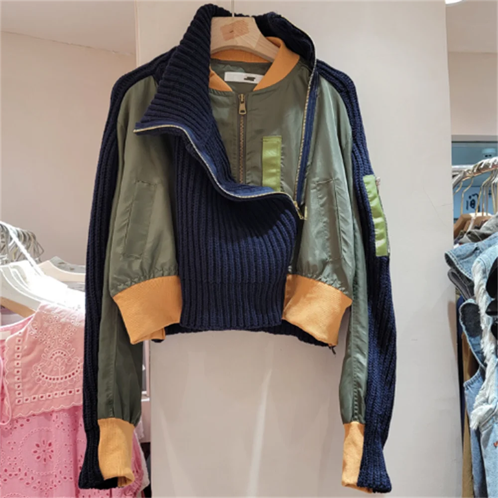 Новая Дизайнерская куртка с боковой молнией, женская трикотажная куртка со шитьем