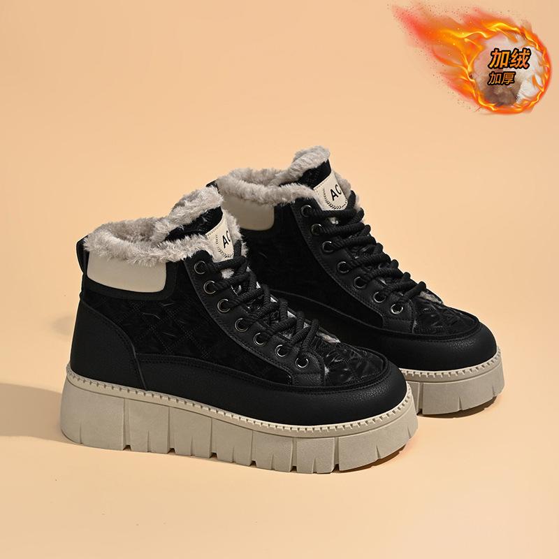 Женские зимние высокие кроссовки на платформе 2025 года с бархатной подкладкой — повседневная обувь с толстой подошвой, визуально увеличивающая рост 33