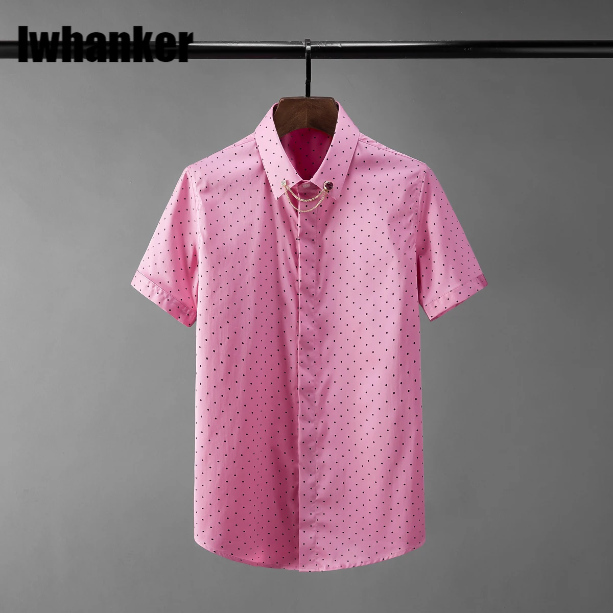 Новая Красная роза мужские рубашки класса люкс с узором в горошек, с принтом короткий рукав Повседневное мужская одежда рубашки размера плю...