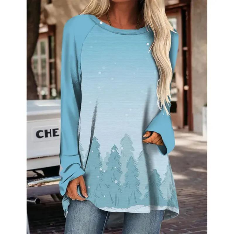 Новая Рождественская Снежинка Круглый вырез Длинный рукав 3D Печатный Имитация Хлопка Элегантный Верх Футболка Весна Женская Нижняя Рубашка XL