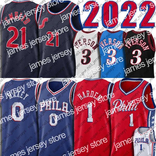 basketball jerseys joel 21 embiid james 1 harden jersey tyrese 0 maxey basketball philadelphias 76er mitchell ness allen 3 iverson julius 6, Black;red