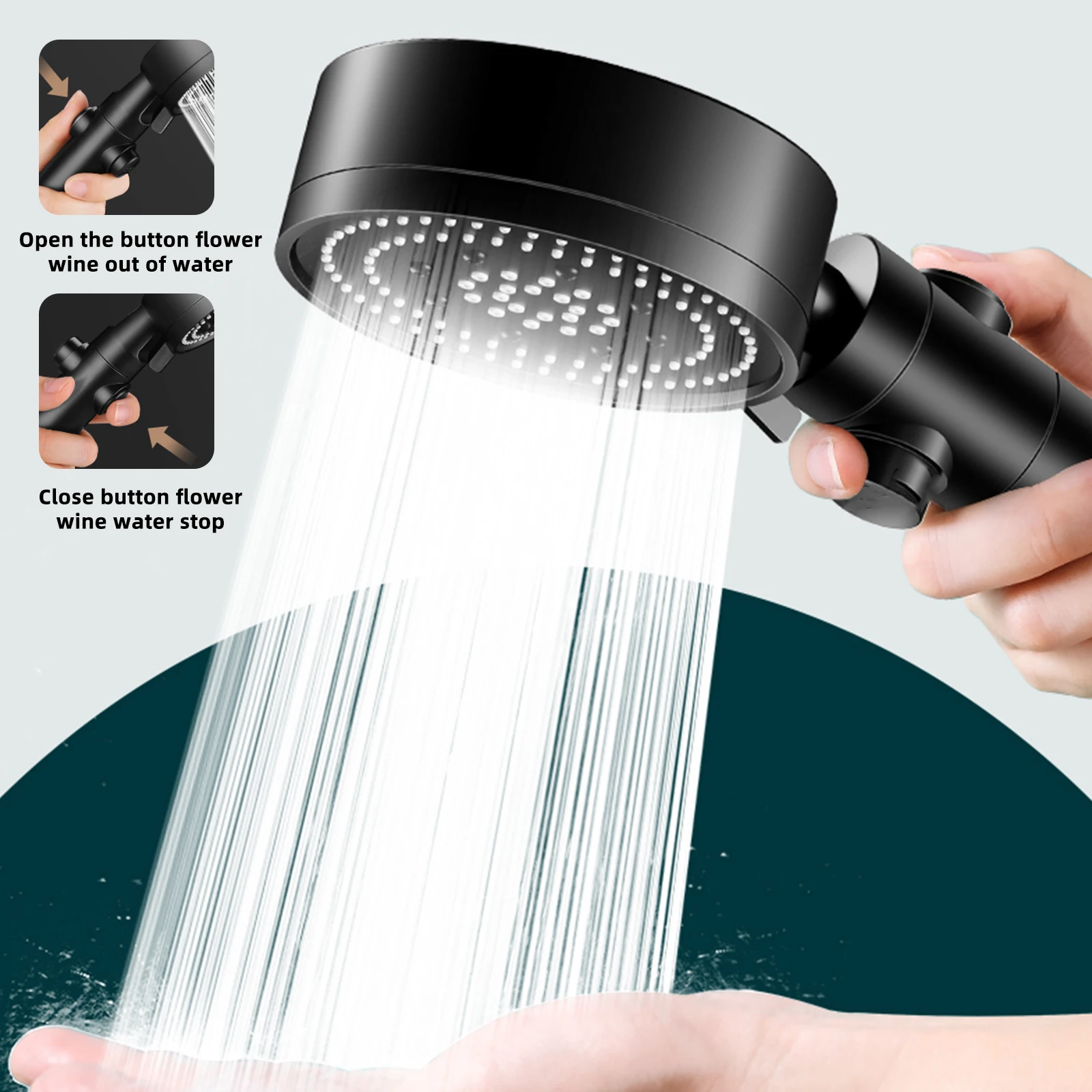 Новая Черная душевая лейка высокого давления с 5 функциями и кнопкой включения/выключения