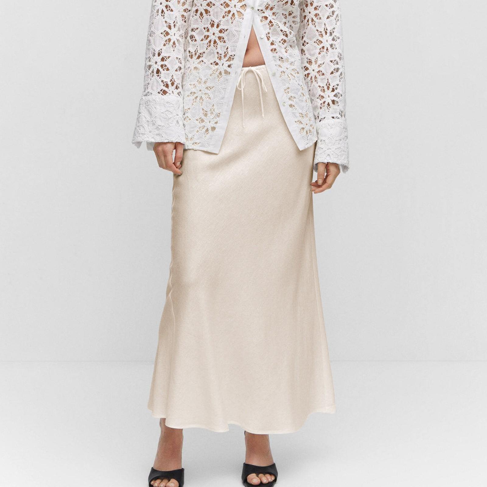 Новая атласная длинная юбка с высокой талией и завязками, однотонная юбка для женщин L бежевый