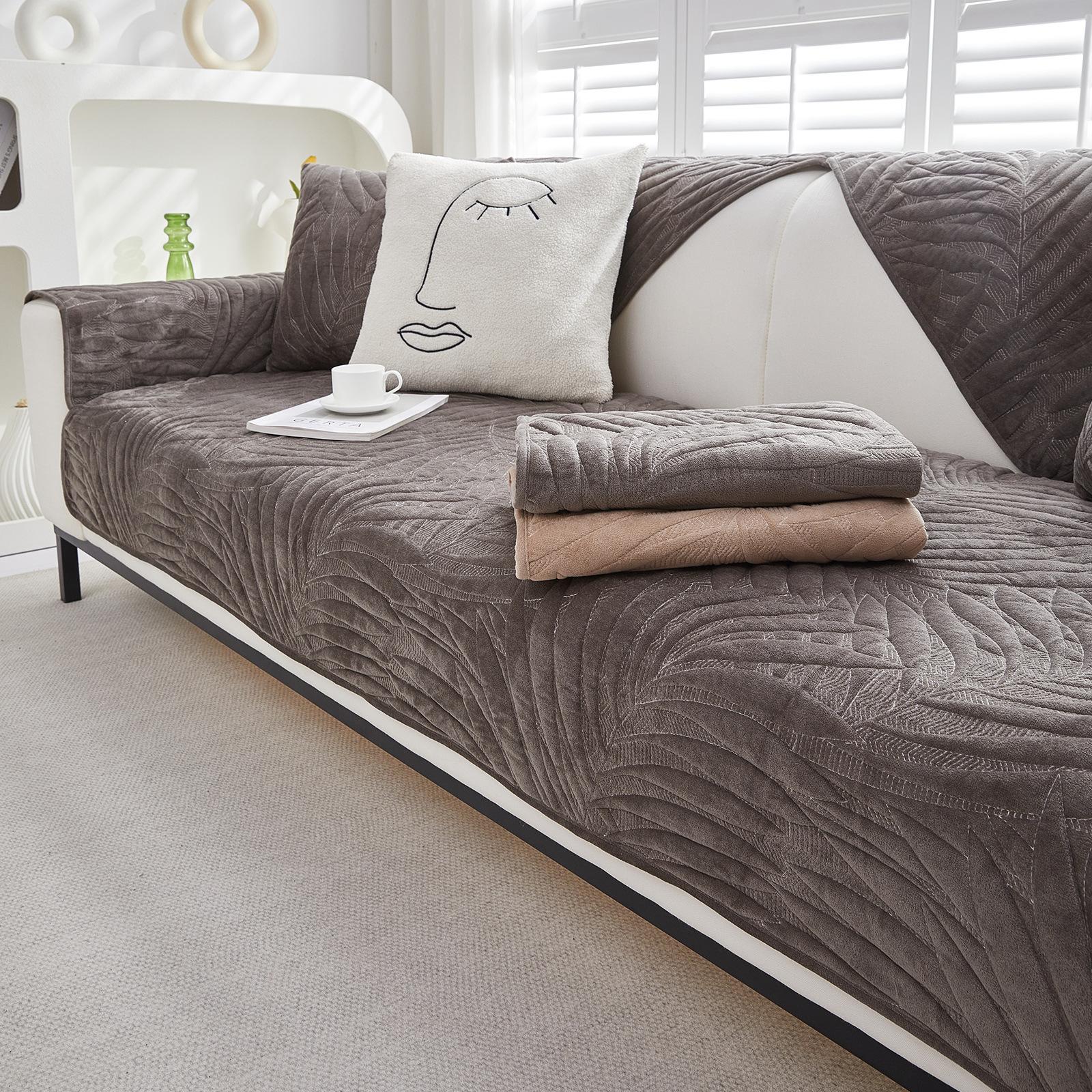 Новая бархатная диванная подушка с листьями, зимняя плюшевая диванная подушка в пасторальном стиле, нескользящий чехол для дивана, спинка, полотенце, чехол для дивана 70*70