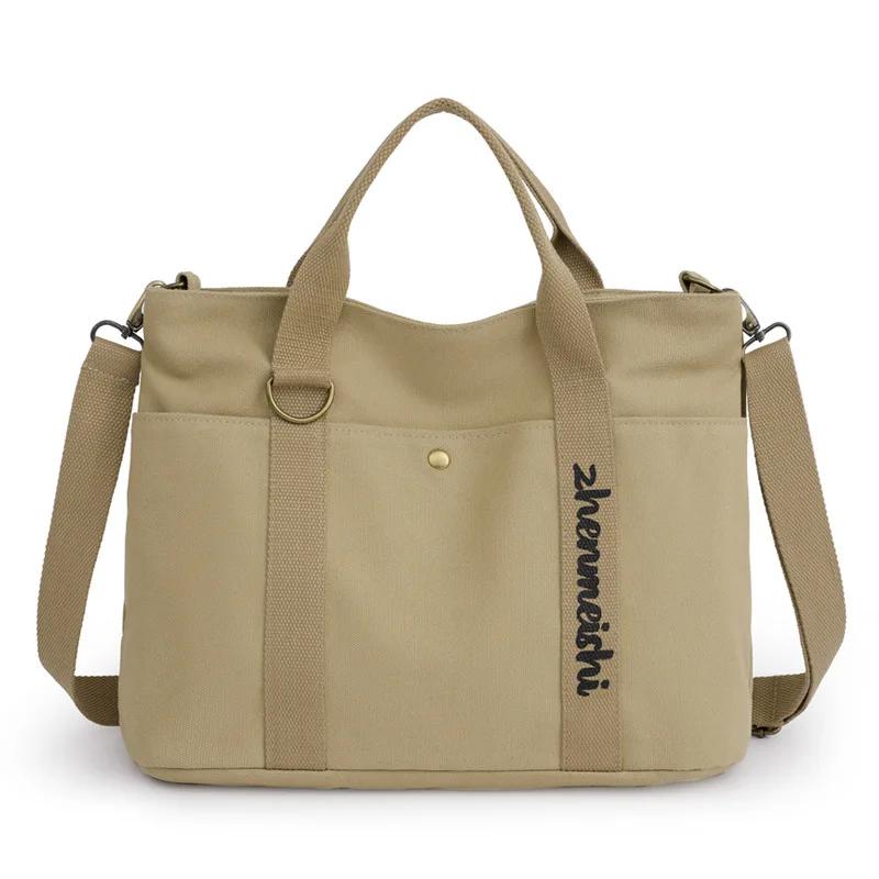 Новая большая вместительная сумка из хлопкового холста, женская модная сумка через плечо в стиле ретро, повседневная сумка-мессенджер с несколькими карманами