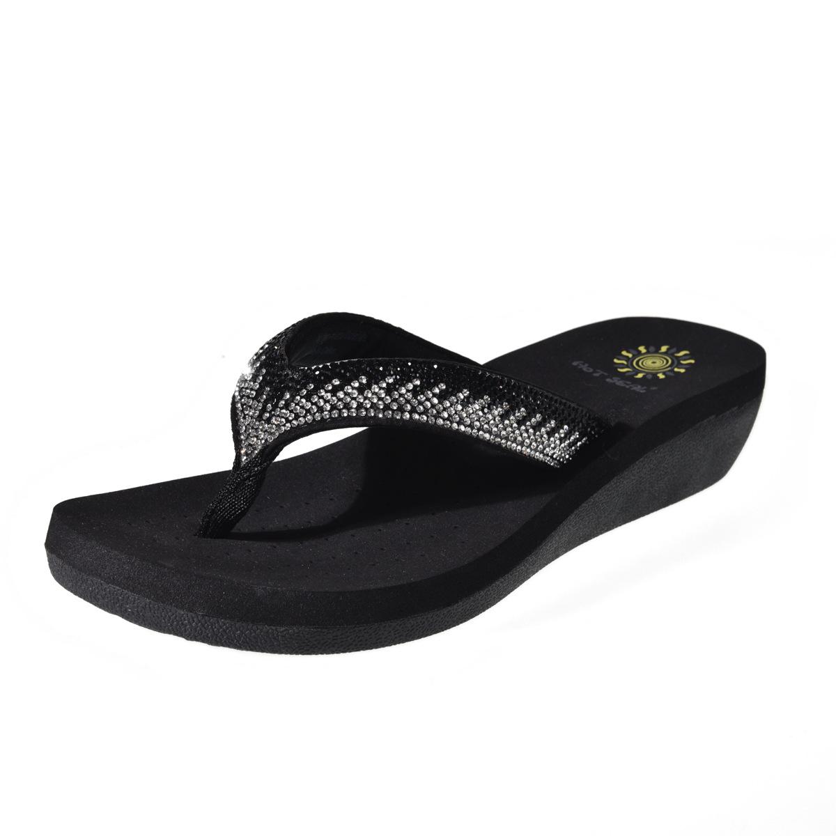 Новая весенне-летняя мода Стразы Каблук Шлепанцы Круглый носок Нескользящие тапочки Слайды Женские Zapatos 35 чёрный