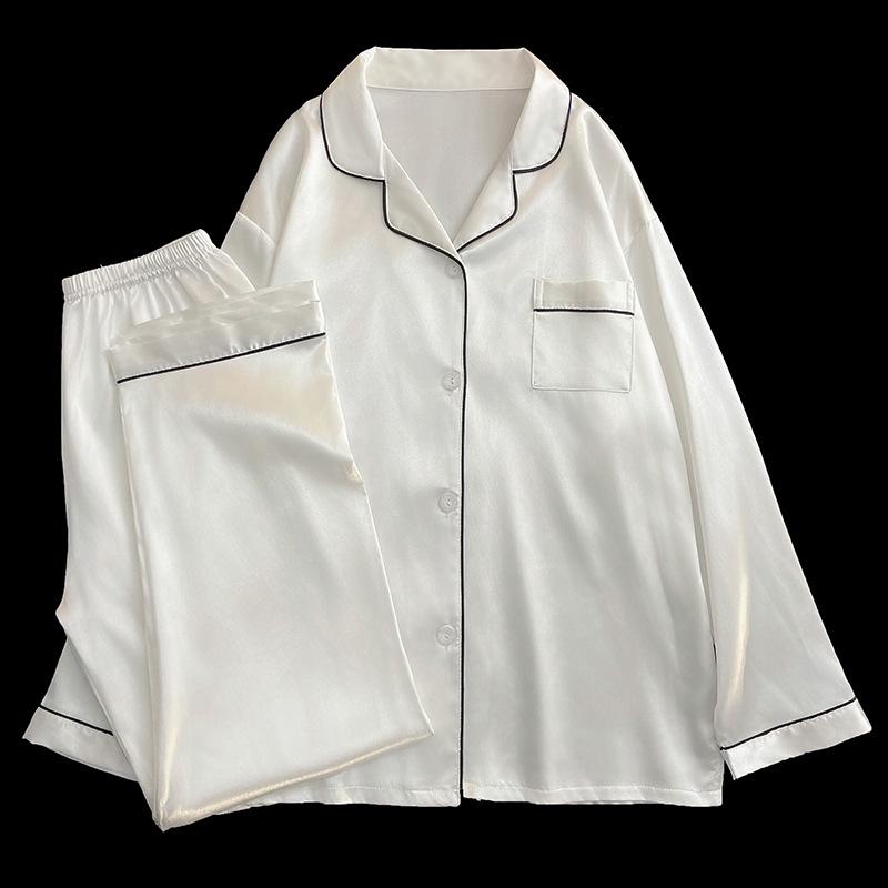 Новая весенне-осенняя женская корейская пижама премиум-класса из ледяного шелка, комплект домашней одежды для девочек с длинными рукавами, простая пижама, комплект домашней одежды XXL