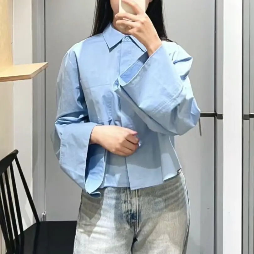 Новая весенняя Повседневная голубая рубашка с воротником на пуговицах