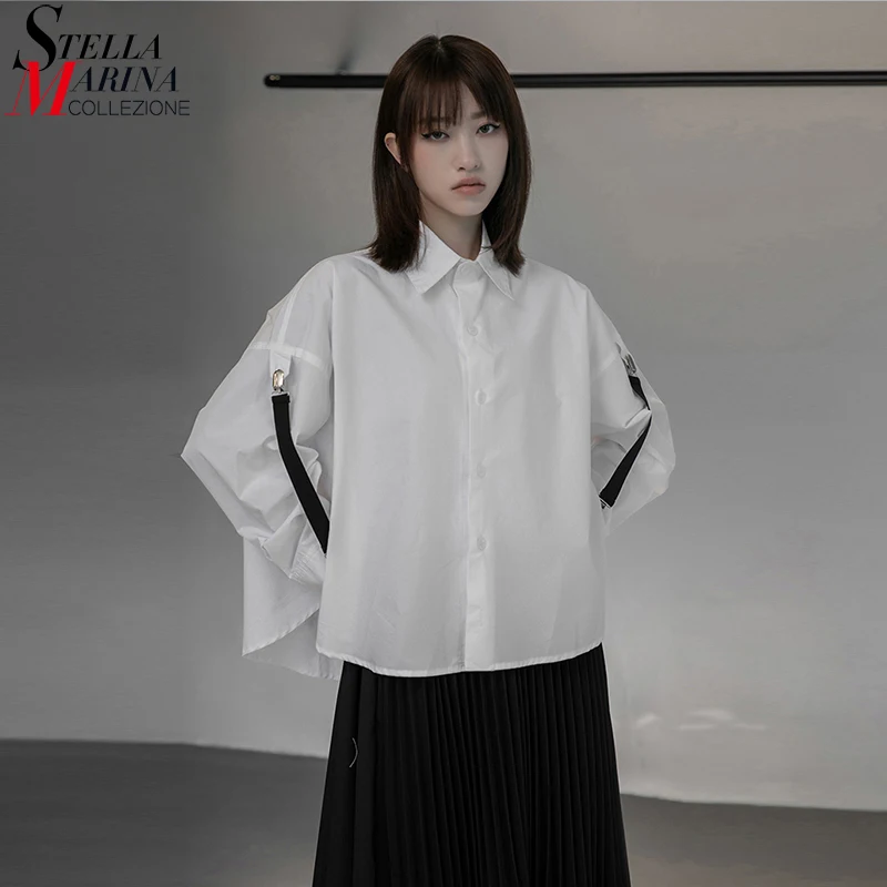 Новая весенняя однотонная белая женская Повседневная Блузка с длинными рукавами и лентами размера плюс, свободная уличная рубашка в японск...