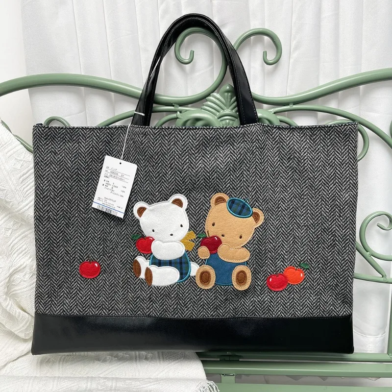Новая вместительная Повседневная Сумка-тоут с вышивкой с мультяшным медведем для женщин