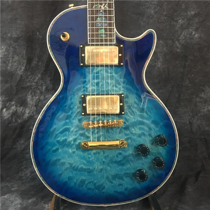 Новая высококачественная электрическая гитара, гриф для электрической гитары с цветочной вставкой, большой голубой цветок. Бесплатная доставка