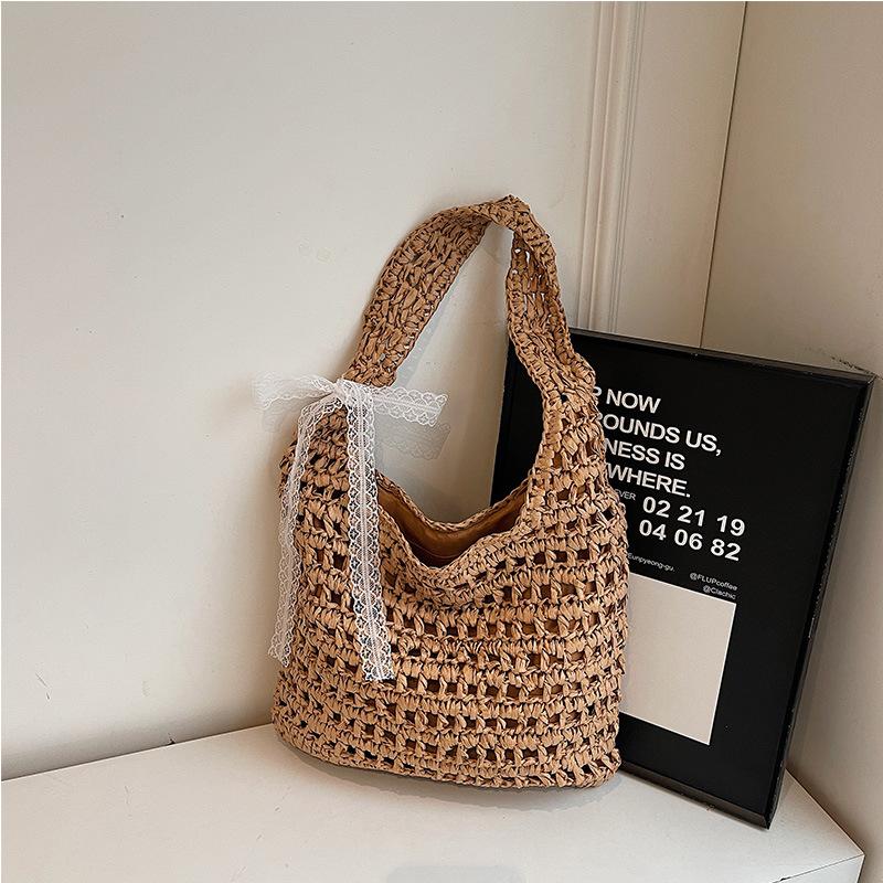 Новая вязаная крючком плетеная сумка Соломенная плетеная сумка Полая пляжная сумка Дорожная дорожная универсальная плетеная соломенная сумка Сумка-тоут